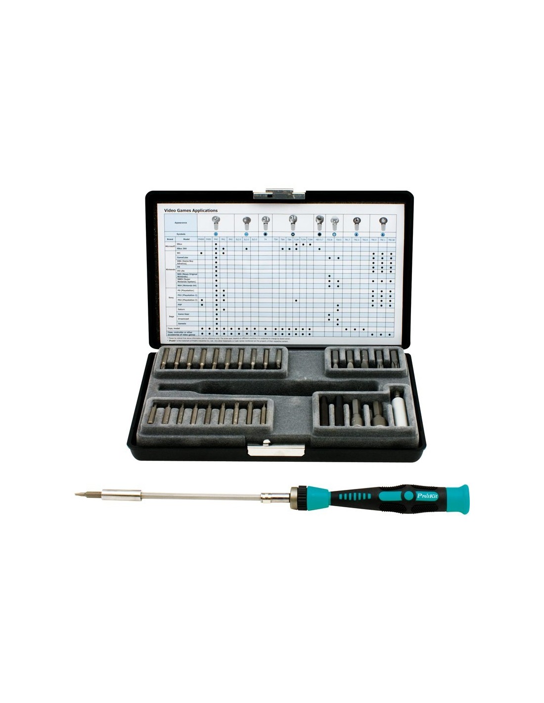 - 28 Puntas de precisión intercambiables para las marcas Microsoft, Nintendo, Sony y Sega.